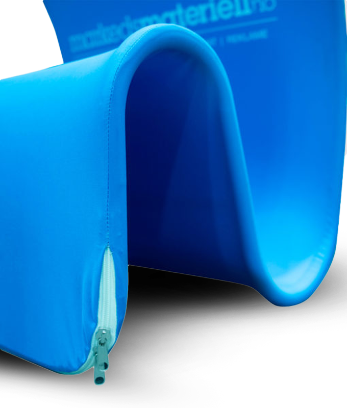 Tekstildisplay har 30% lavere egenvekt og er enda lettere å ta med seg rundt, i bilen, fly, buss og tog. Duken er sydd som en pose med glidelås på den ene enden. Den er nærmest krøllfri og spennes opp automatisk rundt rammen når du lukker glidelåsen. Nummererte fargekoder på rammen gjør montering enkelt ved å sette sammen samme farge og nummer.